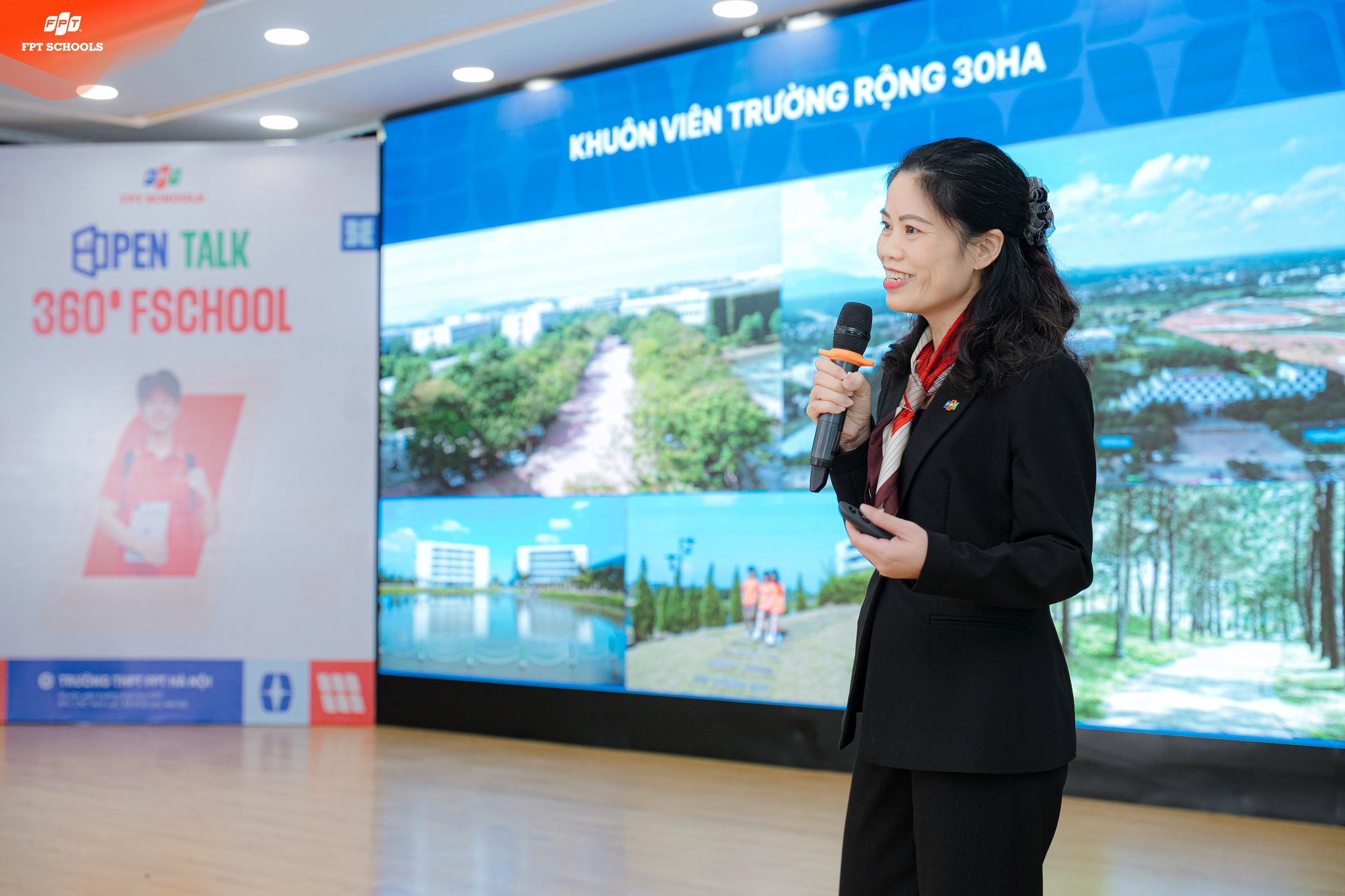 Tại Open Talk, cô Phùng Thị Hiên – Phó Hiệu trưởng Trường THPT FPT Hà Nội đã chia sẻ tổng quan về định hướng giáo dục, môi trường học tập và những giá trị cốt lõi mà nhà trường hướng tới.