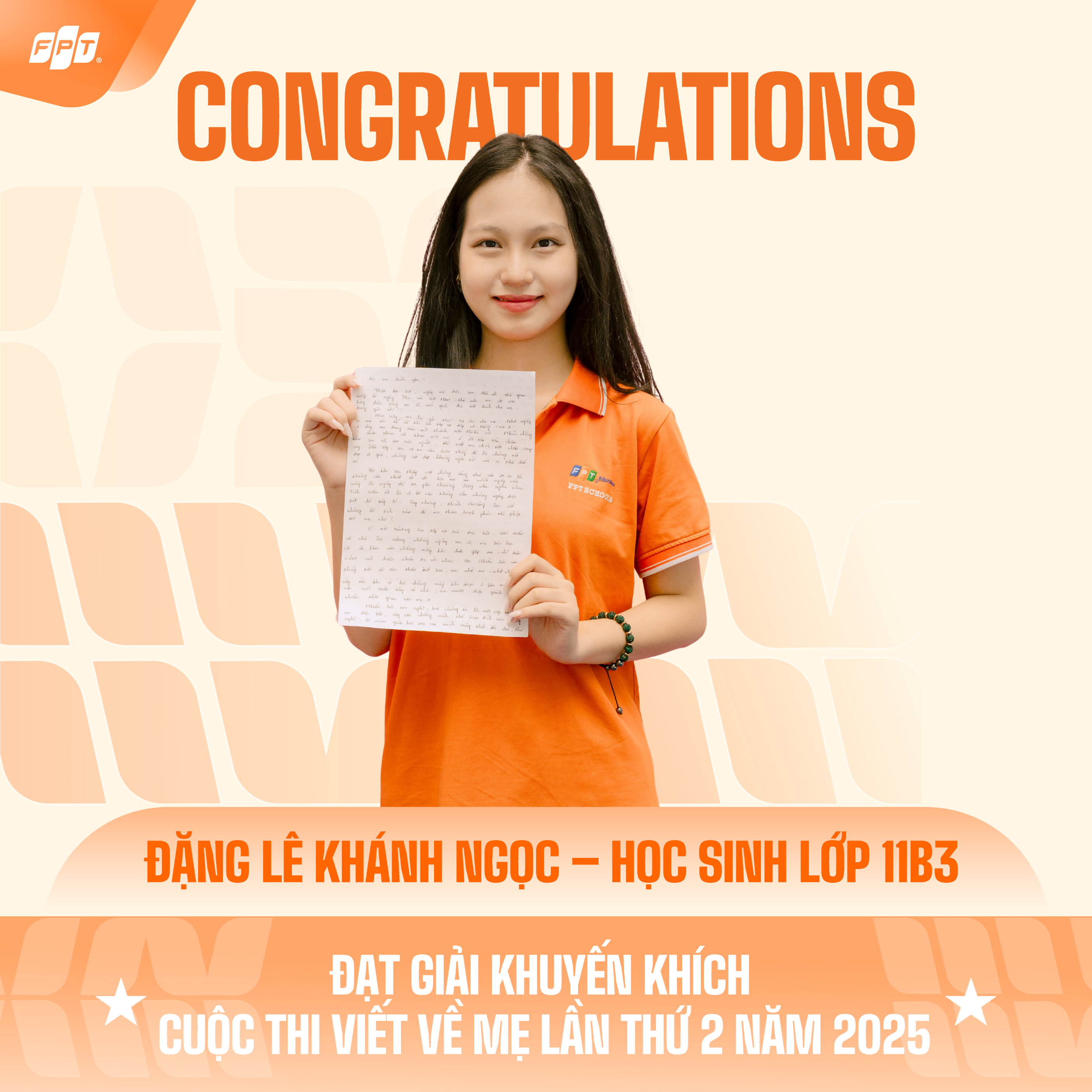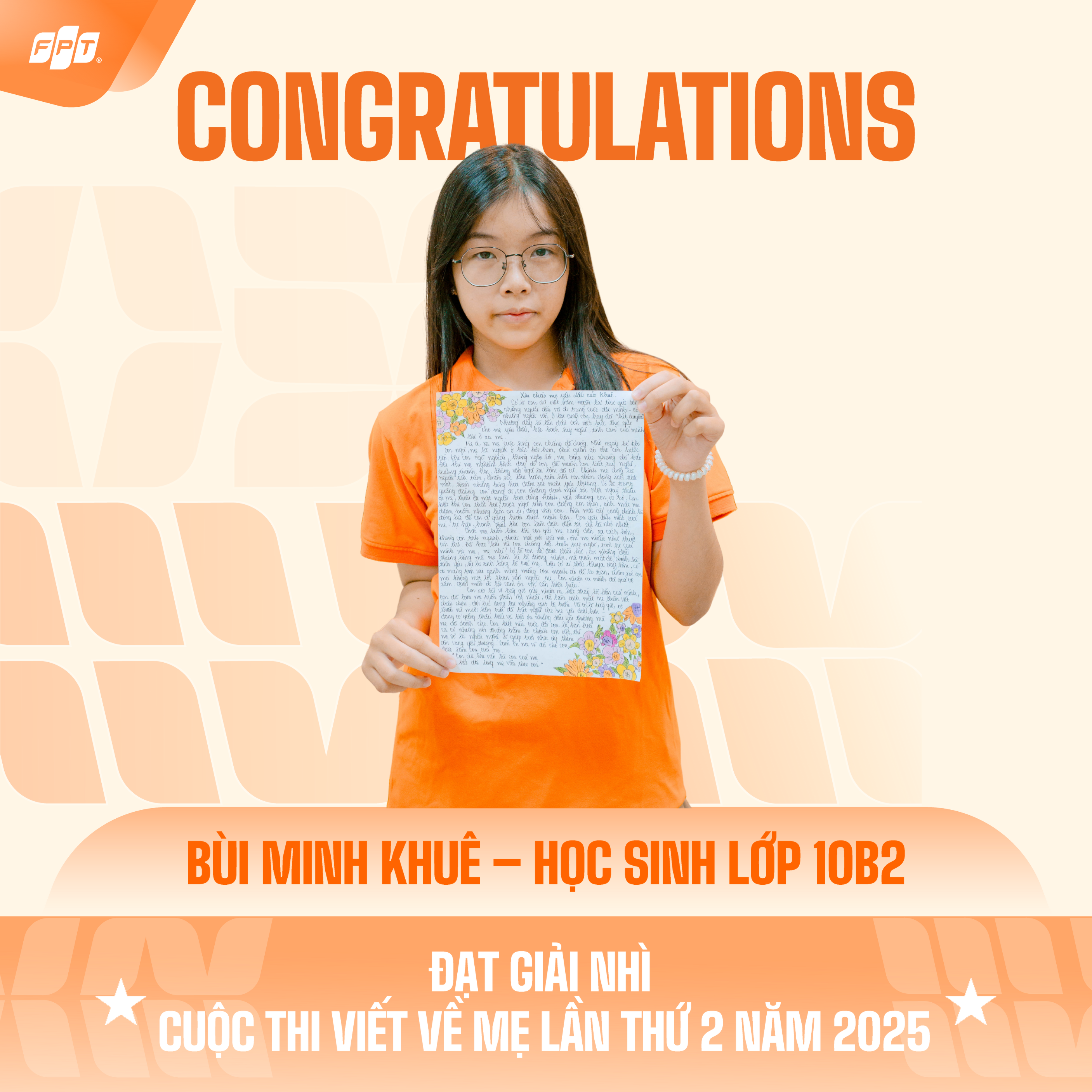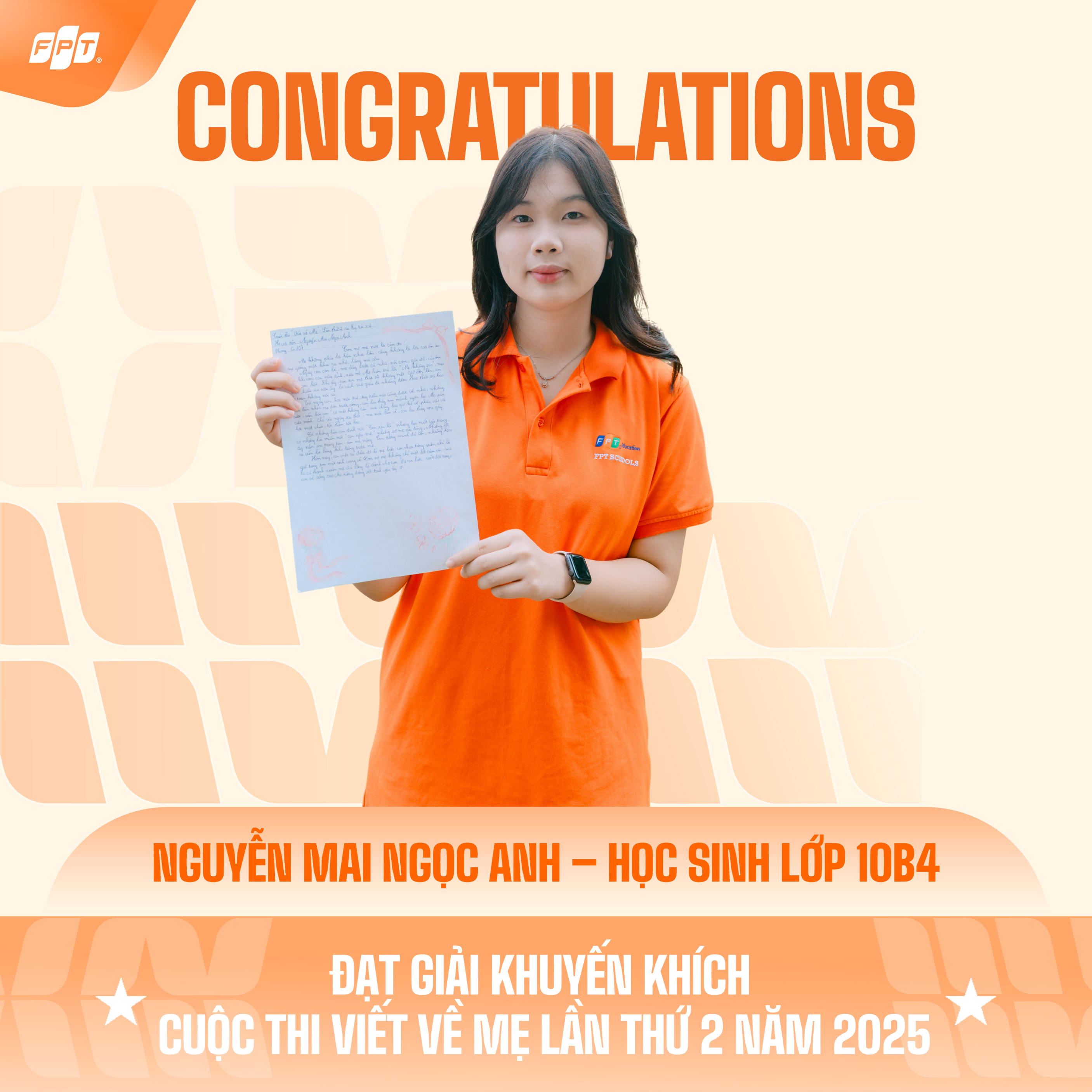 Trân trọng cảm ơn tất cả FSchoolers đã tham gia Viết về mẹ lần thứ 2 năm 2025. Nhà trường kỳ vọng tinh thần yêu thương sẽ tiếp tục lan tỏa, để từ Viết về mẹ, mỗi bạn học sinh thêm trân trọng gia đình, sống đẹp và học tốt hơn mỗi ngày.