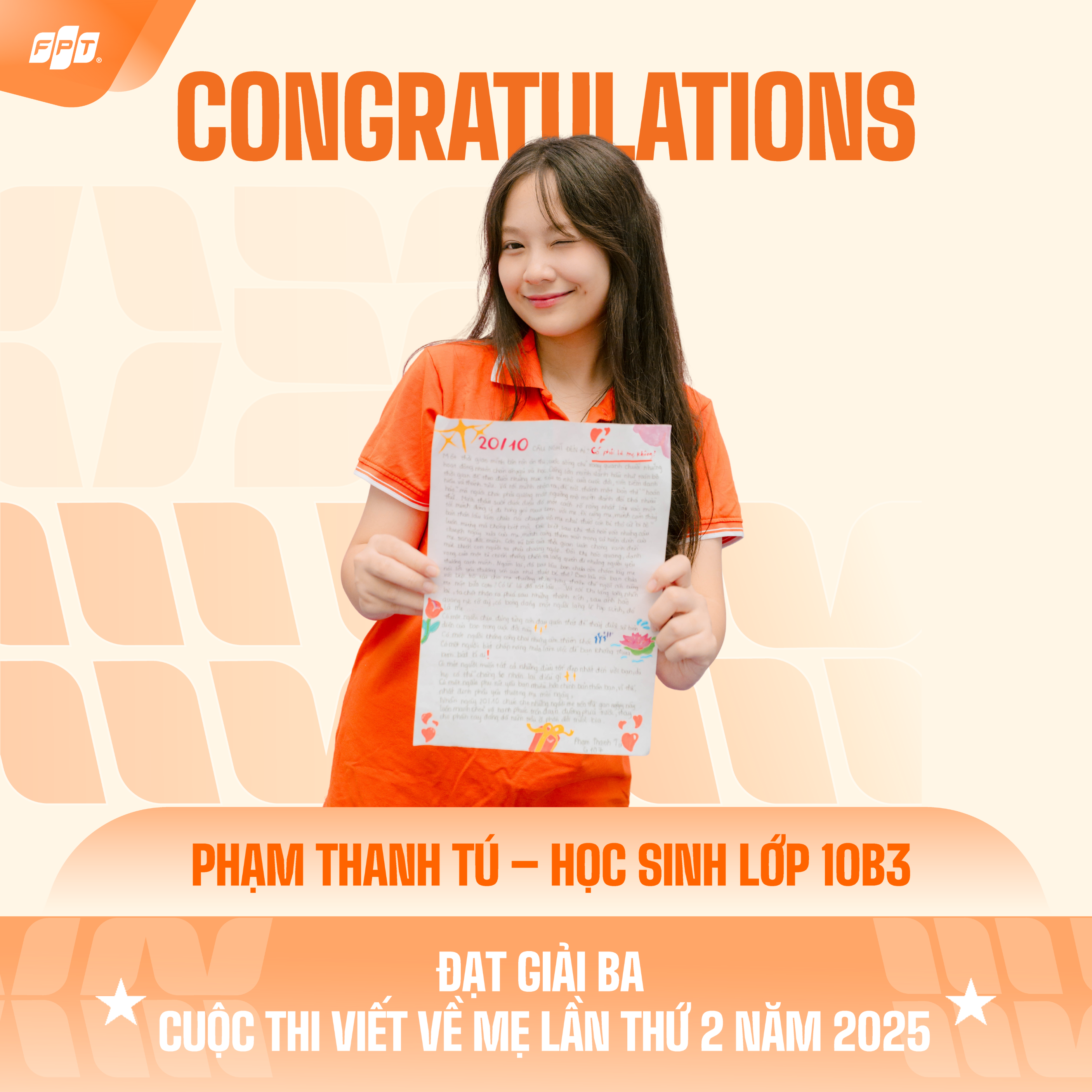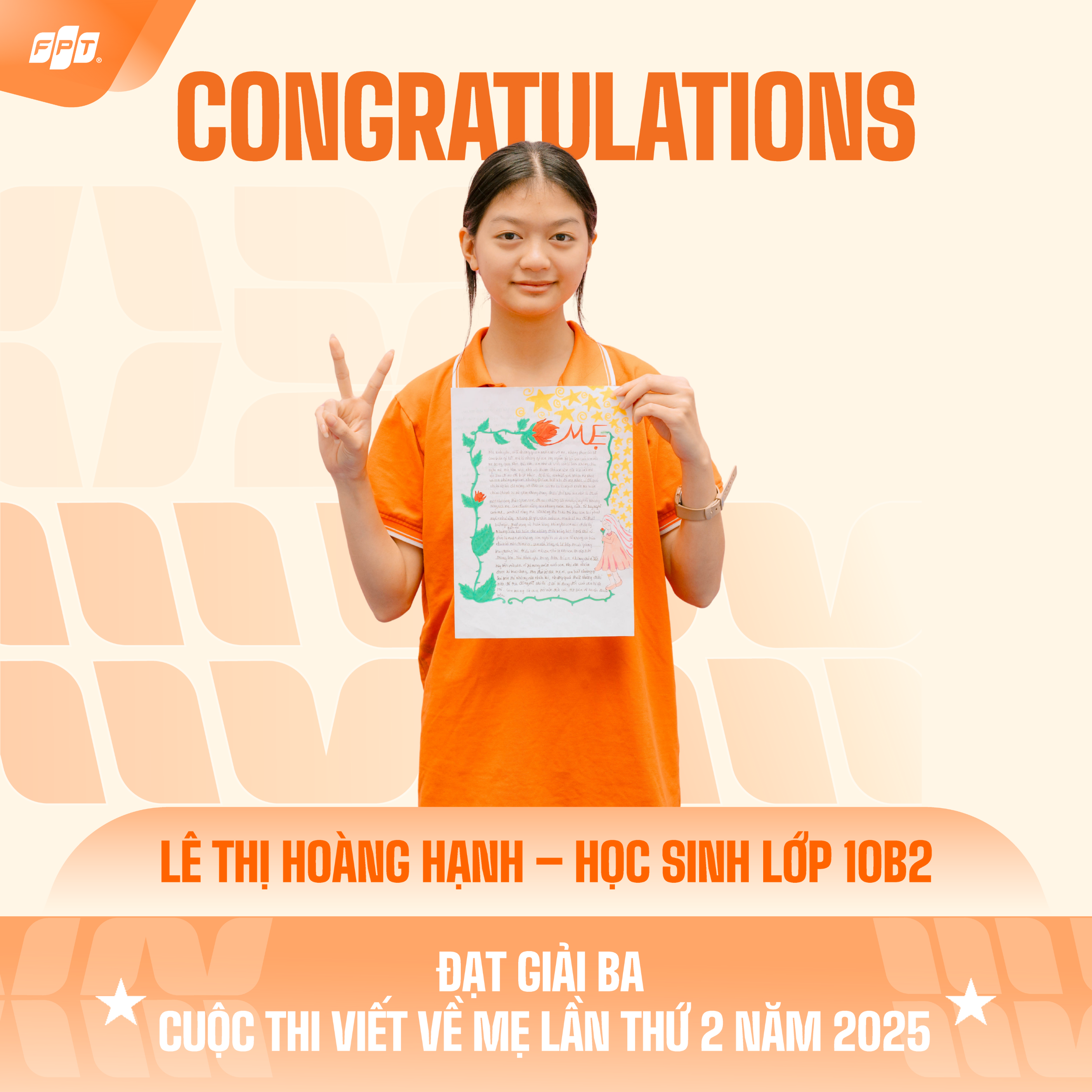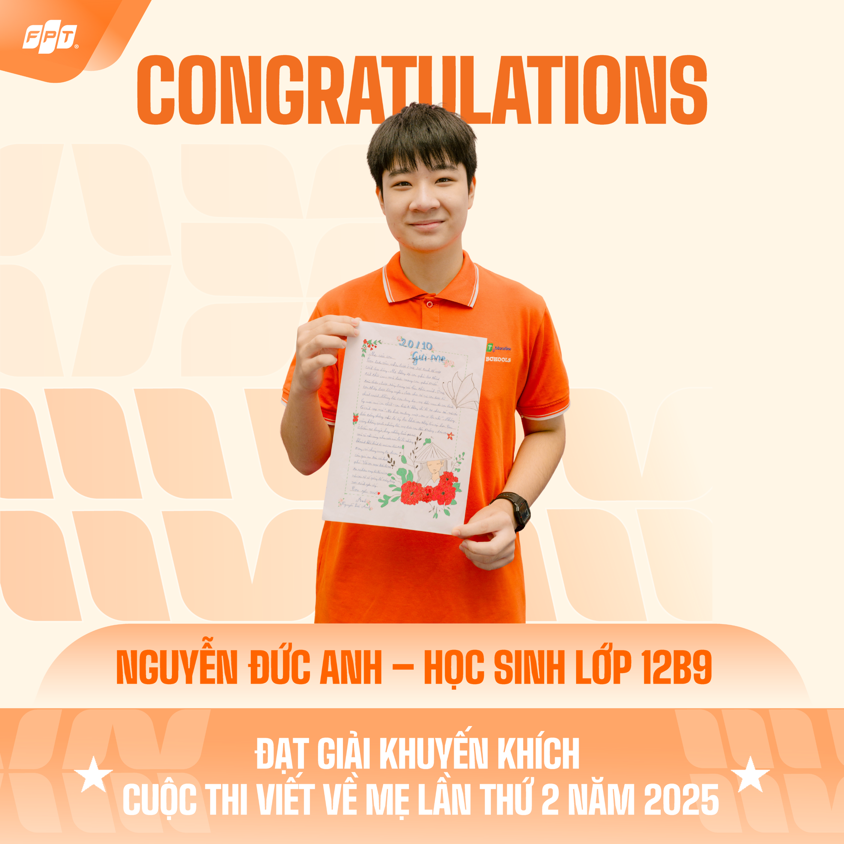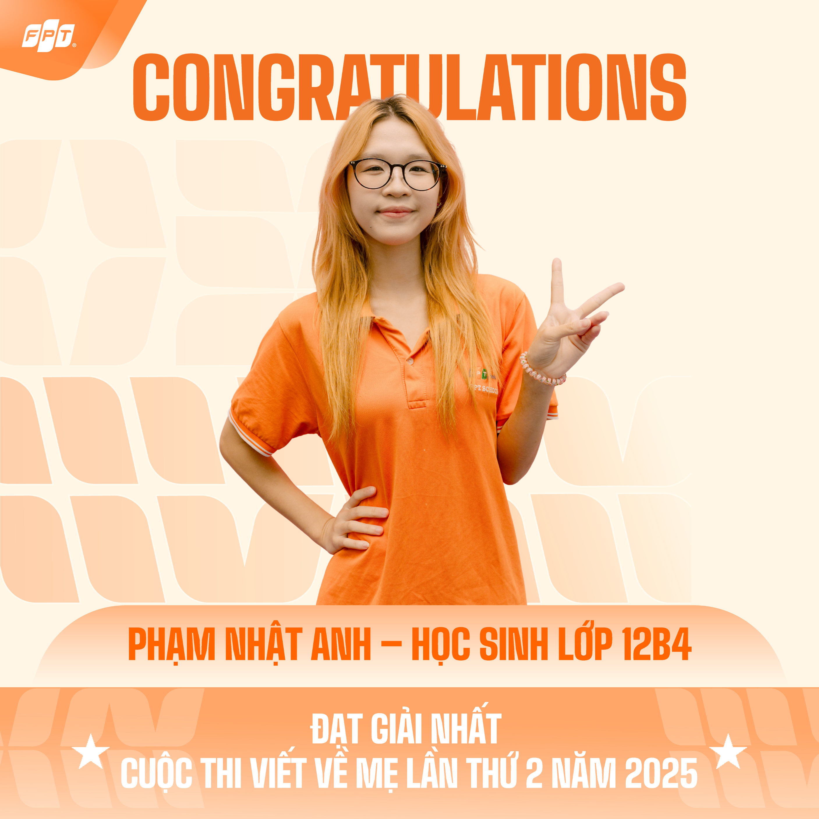 Trân trọng cảm ơn tất cả FSchoolers đã tham gia Viết về mẹ lần thứ 2 năm 2025. Nhà trường kỳ vọng tinh thần yêu thương sẽ tiếp tục lan tỏa, để từ Viết về mẹ, mỗi bạn học sinh thêm trân trọng gia đình, sống đẹp và học tốt hơn mỗi ngày.