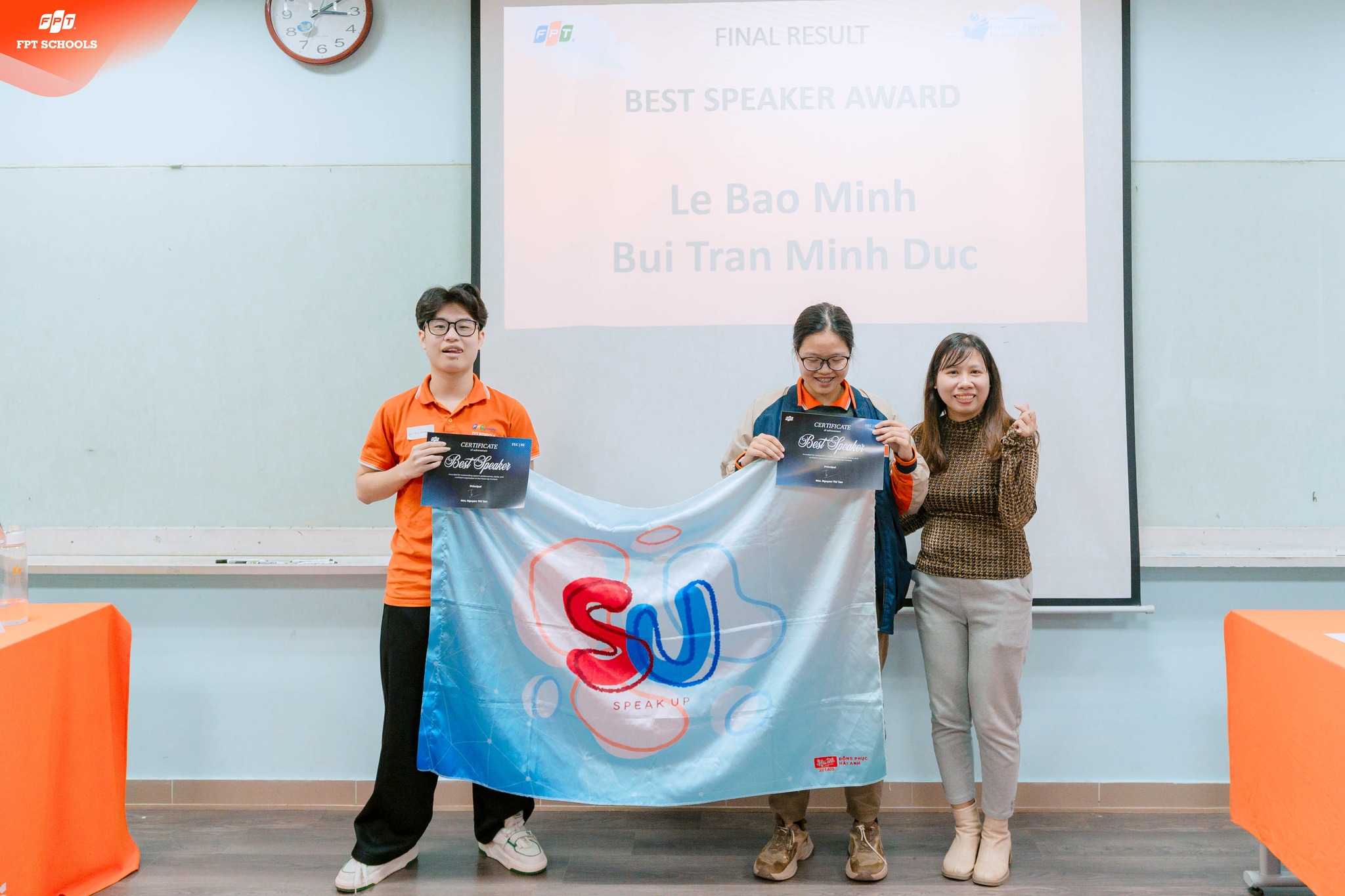 Voice Up Mùa 1 tiếp tục khẳng định định hướng giáo dục của Trường THPT FPT Hà Nội: học sinh học tiếng Anh không chỉ để kiểm tra, đánh giá mà để vận dụng trong giao tiếp, tranh biện và hơn hết là hội nhập với quốc tế. Những trải nghiệm từ cuộc thi chính là nền tảng giúp các bạn học sinh từng bước xây dựng sự tự tin để sẵn sàng chinh phục môi trường học tập toàn cầu.