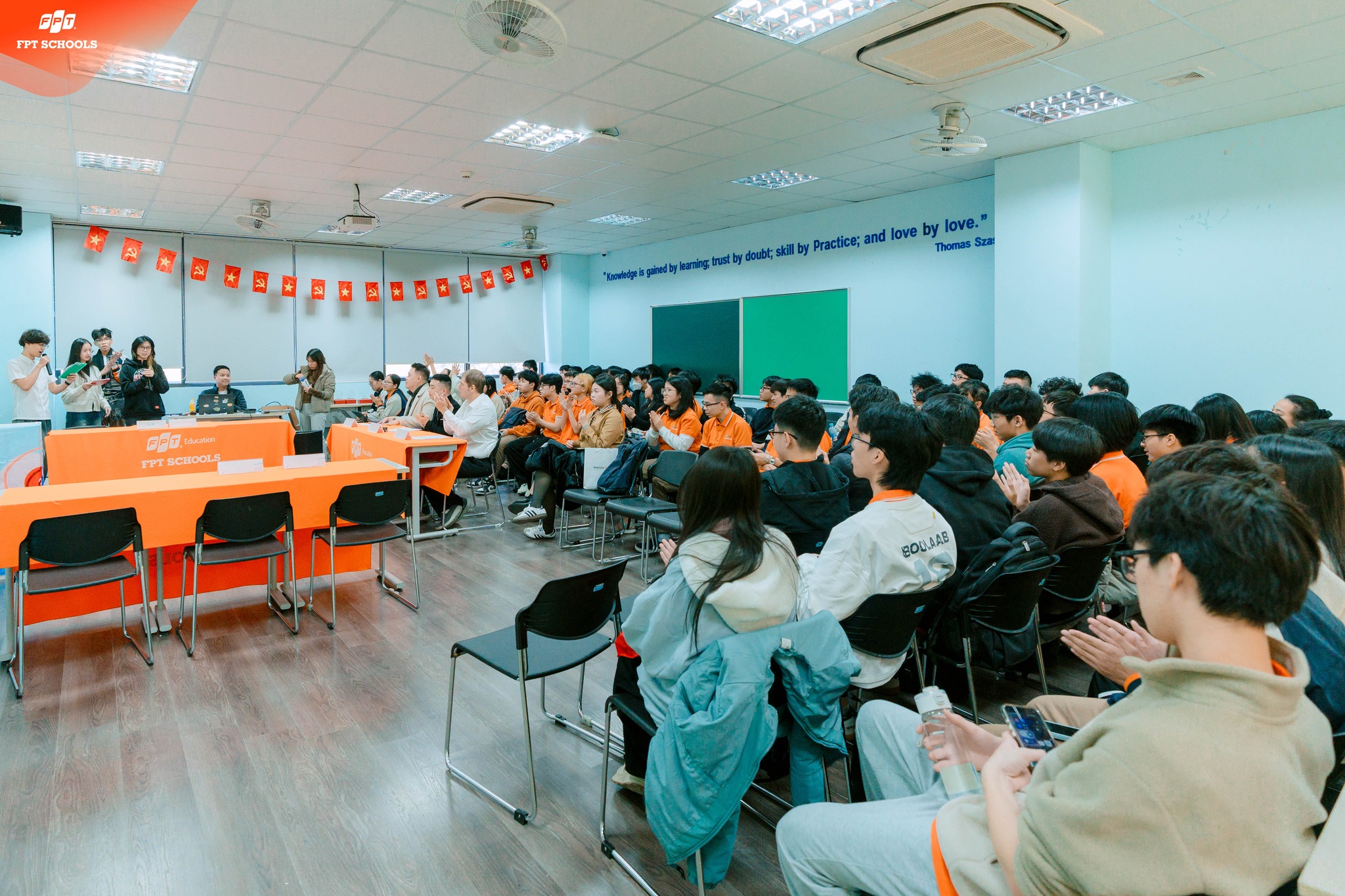Các học sinh Trường THPT FPT đang theo dõi vòng tranh biện