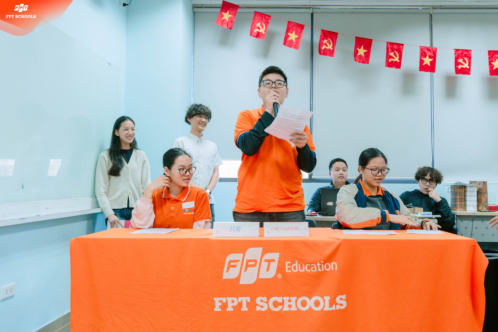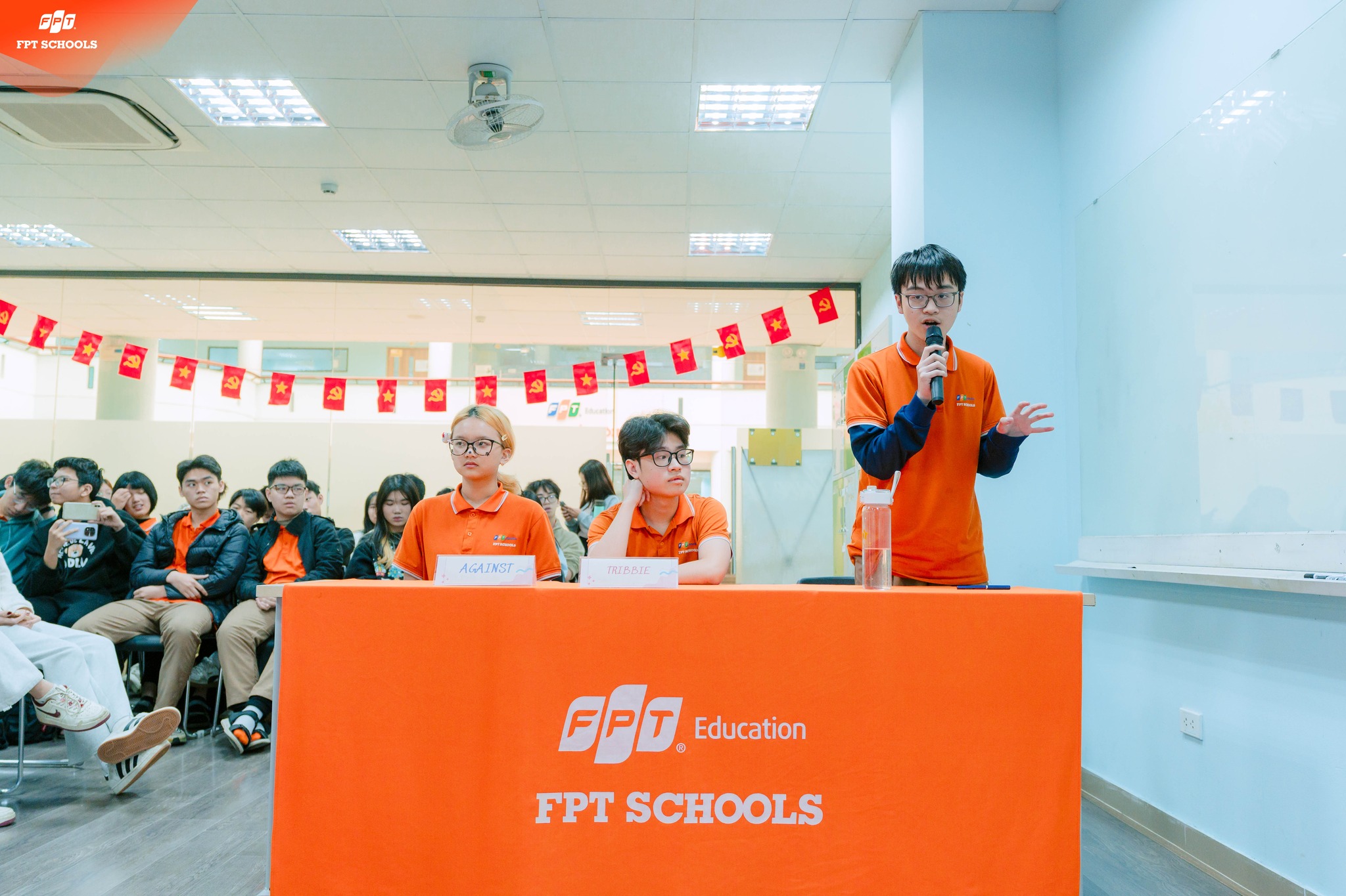 Học sinh Trường THPT FPT Hà Nội bước vào buổi tranh biện Voice Up