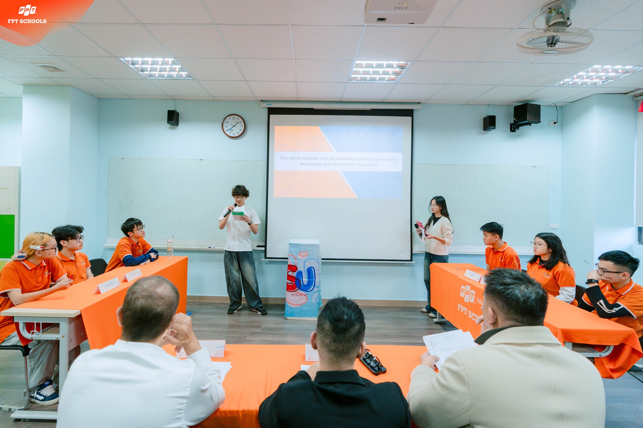 Vừa qua, Trường THPT FPT Hà Nội đã tổ chức cuộc thi Voice Up mùa đầu tiên – sân chơi tranh biện tiếng Anh dành cho FSchoolers, nơi học sinh được rèn luyện kỹ năng nói tiếng Anh, tư duy phản biện và từng bước làm chủ giao tiếp học thuật thông qua những màn tranh luận chuyên sâu.