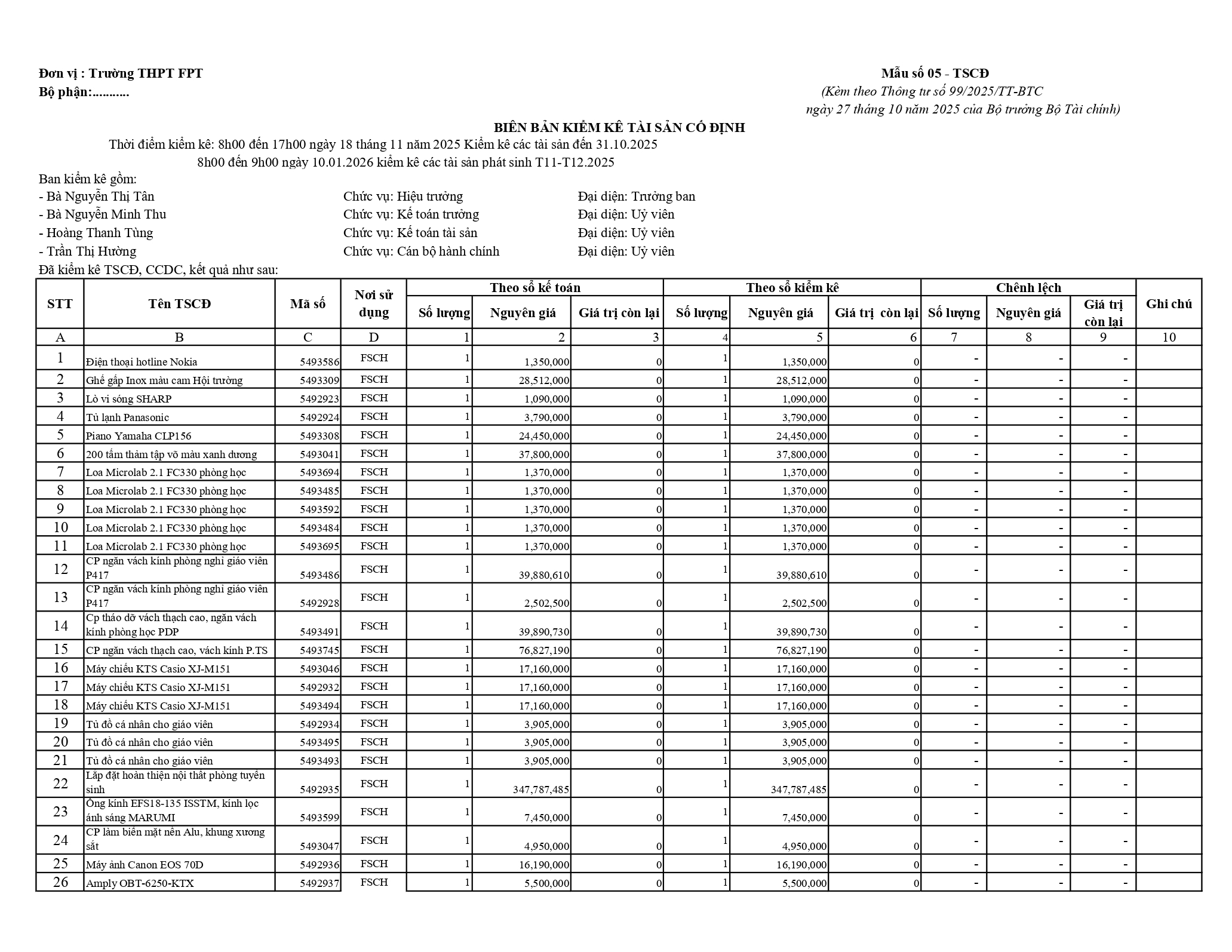 BIÊN BẢN KIỂM KÊ TÀI SẢN CỐ ĐỊNH