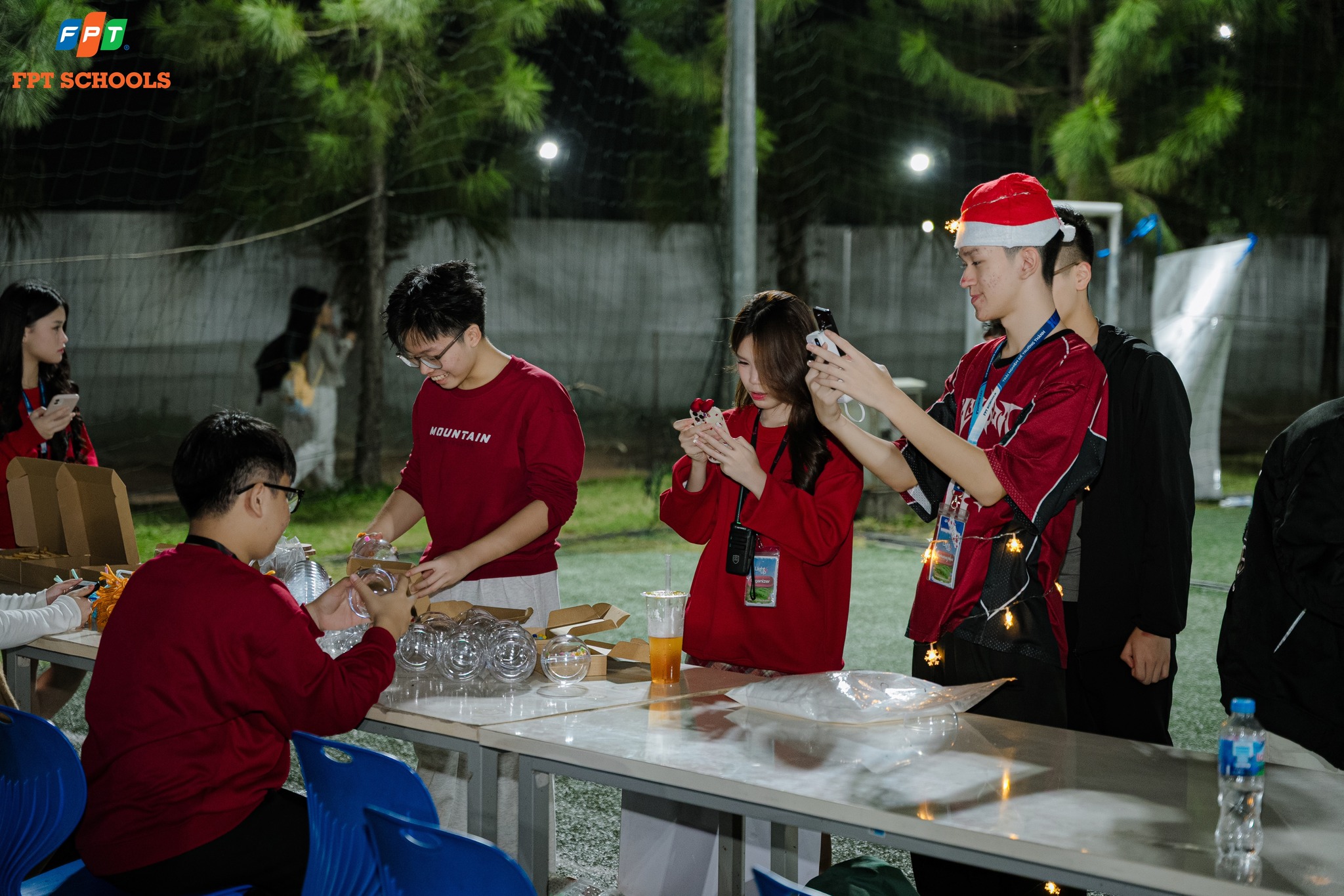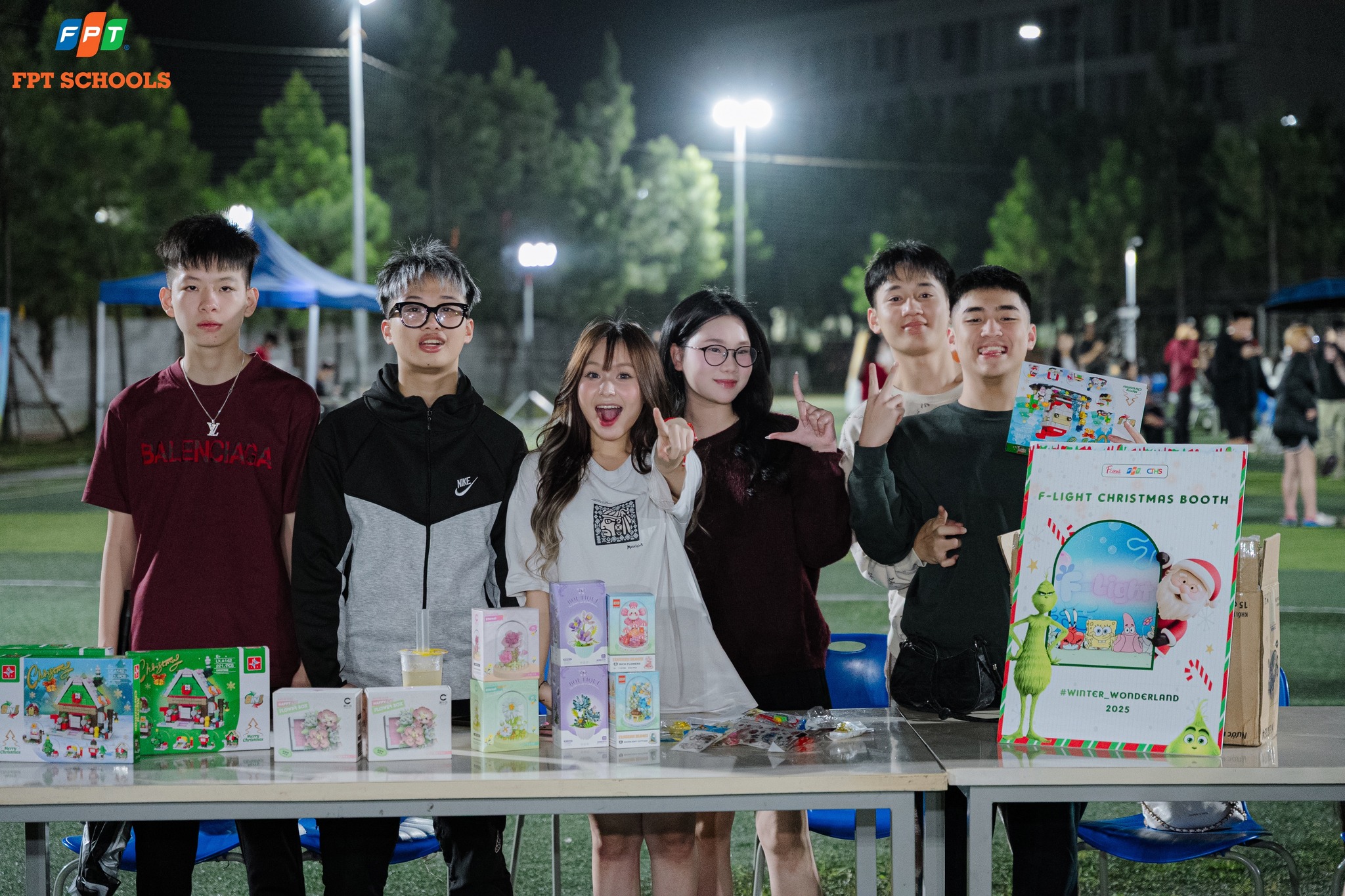 Trước giờ G, khu vực sự kiện trở nên sôi động với các gian hàng workshop và ẩm thực. FSchoolers hào hứng tự tay làm cây thông mini, trang trí bánh quy và quả cầu Giáng sinh, đồng thời ghé các quầy ăn để nghỉ chân và nạp năng lượng. Những hoạt động nhỏ nhưng đầy niềm vui này tạo nên nhịp sống lễ hội rộn ràng, nơi mỗi bạn đều tìm thấy trải nghiệm riêng.